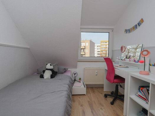Die großzügige Dachgeschosswohnung mit 4-Zimmern erstreckt sich über ca. 78m² und bietet ausreichend Platz für einen Haushalt von 2-3 Personen. Vom Eingangsbereich aus sind alle Zimmer bequem erreichbar. Das geräumige Wohnzimmer bildet das Herzstück der Wohnung. Ein angrenzender Balkon mit Abstellraum lädt zu gemütlichen Stunden im Sommer ein. Zusätzlich zum Elternschlafzimmer gibt es zwei Kinder- oder Arbeitszimmer, eine Küche und ein Badezimmer mit Badewanne. Dank des durchdachten Grundrisses...