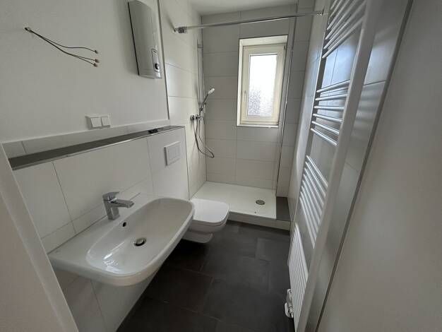 Bei der angebotenen Immobilie handelt es sich um eine renovierte 3-Zimmer-Wohnung gelegen im Erdgeschoss eines gepflegten Mehrfamilienhauses in Oberhausen Alsfeld. Wenn Sie die Immobilie betreten, stehen Sie zunächst einmal in der Diele, welche eine kleine Abstellkammer beherbergt, die für zusätzlichen Stauraum sorgt. Die Diele sowie die Küche und das Bad wurden mit neuen anthrazitfarbenen Fliesenboden versehen. Des Weiteren verfügt das Badezimmer über ein Fenster und wurde zudem mit einer Bade...