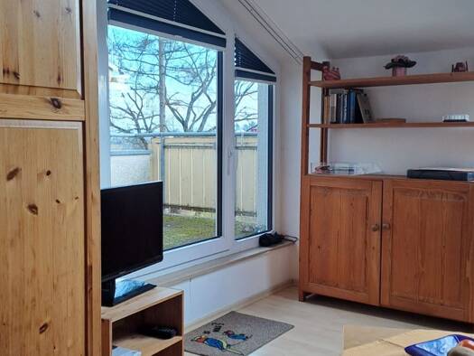 2-Zimmer-Einliegerwohnung Wohnung in Ostfildern-Scharnhausen, EG, ca. 42 m², Schlafzimmer mit Doppelbett, großes Wohn-Esszimmer mit TV, WLAN, Schlafcouch, Terrasse, Tageslichtbad mit Dusche und WC, einfacher Küchenbereich, Flughafen-Messe: 7 km; Hbf. Stuttgart: 20 km