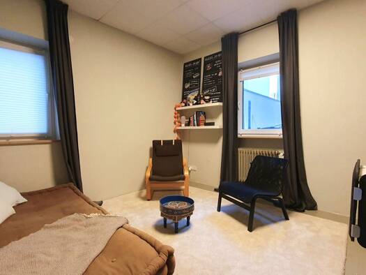 Schöner Raum mit ca. 16 qm Größe und zwei Fenstern, separat durch eine Tür getrennt von den übrigen Bereichen der Bürogemeinschaft. Der Raum ist ruhig, da zum Hinterhof gelegen. Die Bürogemeinschaft ...