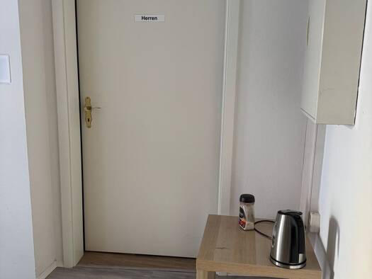 Schöne helle kleine Wohnung in Mehrfamilienhaus in ruhiger Lage, komplette Sanierung bis 02/ 2019, inkl. Kfz-Stellplatz Ca. 37 m2 Wohnfläche 1 Zimmer im Erdgeschoss Möbliert mit Bett + 4 Schubkästen, Nachttisch, 2 Kleiderschränke, Schränke im Bad, Esstisch, Regal im Flur und Schuhregal, Waschmaschine