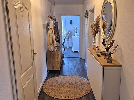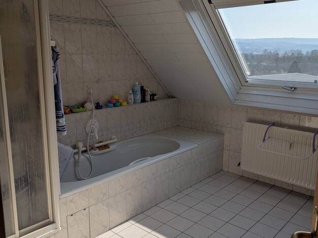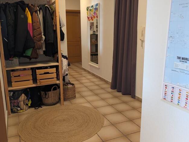 Die ruhige Wohnung befindet sich in einem 2-Familienhaus, direkt im Kernort von Hosenfeld (insgesamt ca. 4.600 Einwohner). Sie liegt sehr zentral; Supermärkte, Banken, Bäckereien, Cafés, Metzgereien, Kindergarten, Schule, Sporthalle, Zahnarzt, Hausarzt, Fitnesscenter, ... sind fußläufig erreichbar. Die Bushaltestelle mit der Anbindung z.B. direkt nach Fulda liegt quasi vor dem Haus. Neben einer großen Küche (einfache Einbauküche) mit genug Platz für einen gemütlichen Essbereich, einem Bad, eine...