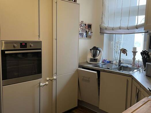 Die Wohnung verfügt über eine neuwertige Küche mit Kühl-Gefrier-Schrank, Spülmaschine, Induktionsherd und einen Balkon. Das Bad ist neu mit Eckbadewanne, Duschkabine und Waschmaschine. Internet muss separat gebucht werden. Wohn- und Schlafzimmer sind nach Süden gerichtet. Abstellraum. Zentrale Heizungsanlage. Die Wohnung ist für Wohngemeinschaften geeignet und Haustiere sind nach Absprache erlaubt. Die Wohnung liegt in einer Nebenstraße und ist ruhig. Bus- und Straßenbahnhaltestelle 100 m, Busl...