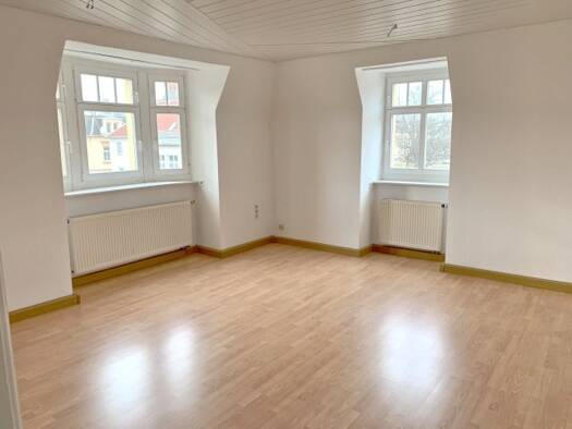 3 Raumwohnung befindet sich im 1 OG eines Stadthauses zentrumsnah am Markt.Einkaufsmöglichkeiten , Apotheken , Schulen sowie Anbindung an Personennahverkehr sind fußläufig erreichbar. Die Wohnung verfügt über 2 sehr geräumige Zimmer und ein kleineres( evt. Büro oder Kinderzimmer) Weiterhin ist eine große Küche (offene Wohnküche ohne Küchenmöbel ) und ein schönes Bad mit barrierefreier Dusche und Badewanne zu finden. Zur Wohnung gehört ein kleiner Abstellraum wo Waschmaschine / Trockner untergeb...