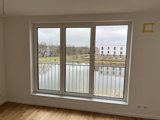 Es handelt sich hier um einen schönen Neubau nach KfW 55 EE, aufgeteilt in zwei Hauseingängen, eine letzte 4-Zimmer-WHG ist noch frei. Die 4-Zimmer-Wohnung verteilt sich auf einen Flur, Abstellraum, ein Bürozimmer, ein Wohnzimmer mit offener Einbauküche und ein Duschbad plus Schlafzimmer und Kinderzimmer. Die Wohnung überzeugt mit ihrer modernen Bauweise und hat eine Fußbodenheizung. Die teilweise bodentiefen Fenster durchfluten die Wohnräume mit Tageslicht. Der Fußboden wird aus Vinyl, in hell...