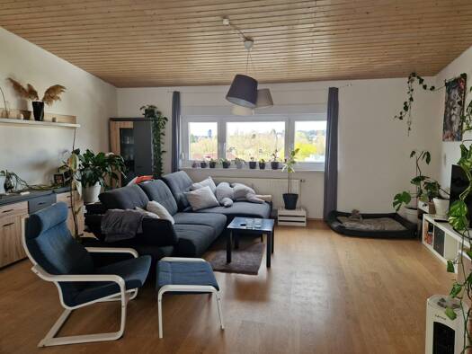 Gemütliche, schön möblierte 3-Zimmer Wohnung mit Balkon im Dachgeschoss eines 2-Familienhauses in Stuttgart Mühlhausen. Gute Einkaufsmöglichkeiten, Restaurants, die U-Bahn, der Max-Eyth-See sowie der Rad- und Laufweg am Neckar entlang befinden sich in unmittelbarer Nähe und sind bequem zu Fuß erreichbar. Die Wohnung ist auch gut für zwei Kollegen geeignet, da sie über zwei getrennte Schlafmöglichkeiten verfügt. Das helle Wohn-Esszimmer ist mit einem Sofa, einem Couchtisch, einer Wohnwand, einem...