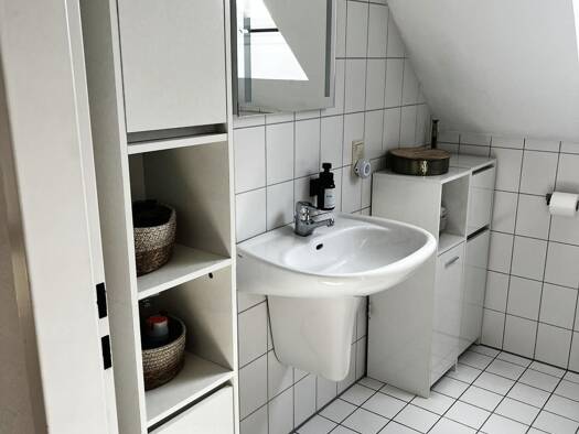 Die charmante Altbauwohnung hat zwei Etagen, wovon im Erdgeschoss pflegeleichter Fliesenboden und im Obergeschoss kuscheliger Teppichboden verlegt ist. Die Wohnung verfügt über einen separaten Eingang, eigenen Heiz-, Strom- und Wasseranschluss, eine weitere Tür zur Garage an der Küche für einfaches Ein- und Ausladen. Die Wohnung verfügt über keinen eigenen Garten, aber ist fußläufig zum Emsdettener Venn.
