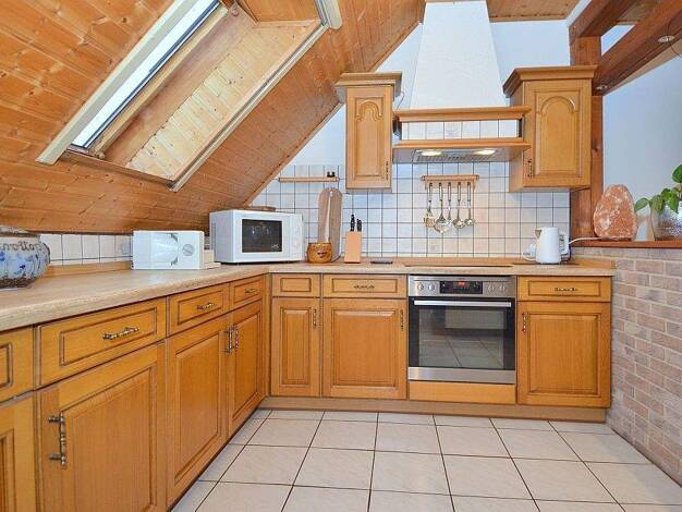 Alle Geschäfte des täglichen Bedarfs und die öffentlichen Verkehrsmittel befinden sich im unmittelbaren Umkreis. Trotz der ruhigen und idyllischen Umgebung bietet die Lage der Wohnung eine optimale Anbindung zur Autobahn A61. Das Wohn- und Esszimmer ist mit zwei Sofas, einem Esstisch mit vier Stühlen, zwei Kommoden und einem Sideboard mit Flatscreen-TV eingerichtet. Die große, offene Wohnküche mit Geschirrspüler ist voll ausgestattet. Hier wird dem Mieter eine Waschmaschine zur Verfügung gestel...