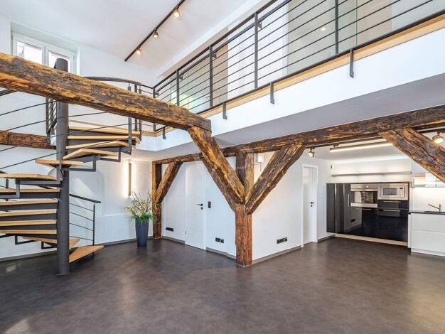 Diese stilvolle Dachgeschosswohnung beeindruckt durch ihre offene Bauweise und einen außergewöhnlich großzügigen Lichteinfall in allen Wohnbereichen. Der moderne, offene Schnitt verleiht der Wohnung einen loftähnlichen Charakter und sorgt für ein angenehmes, luftiges Wohngefühl. Der Wohnbereich mit integrierter Küche bildet den Mittelpunkt der Wohnung und bietet viel Raum für Wohnen und Entspannen. Das separate Schlafzimmer schafft einen ruhigen Rückzugsort, während das Badezimmer funktional un...