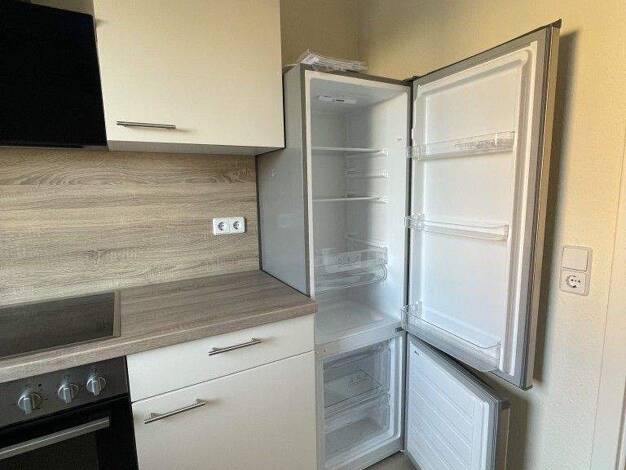 Diese moderne Wohnung hat folgende Ausstattung: Wohnräume mit Laminatboden . Wohnzimmer mit Balkon in den begrünten Innenhof und Weitblick. Bad mit Wanne und Waschmaschinenstellplatz. Flur gefliest. - Tiefgaragenstellplatz - Gartenmitbenutzung -Keller vorhanden - Trockenraum vorhanden - Fahrradraum vorhanden, 50 EUR für die EBK ist monatlich zu zahlen. Die Küche ist inklusive aller elektrischen Geräte.