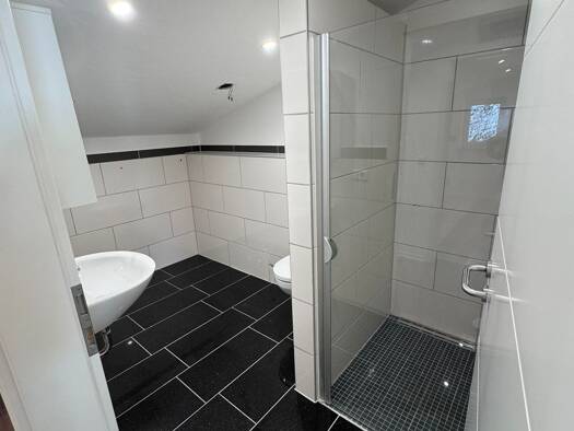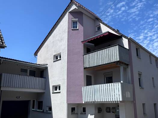 Wenn Sie das Nicht-Alltägliche suchen, sind Sie hier genau richtig: eine ehemalige Scheune wurde in diese großzügige Maisonettewohnung umgebaut. Sie besticht durch ihre außergewöhnliche Grundrissgestaltung mit viel Platz für die ganze Familie. Die Hauptwohnebene befindet sich im 1. Obergeschoss und bietet neben dem hellen Wohn-/Esszimmer noch Küche, zwei Schlafräume, Badezimmer, Diele und Gäste-WC. Vom Balkon genießen Sie eine schöne Aussicht ins Grüne. Das Dachgeschoss beherbergt ein Duschbad ...