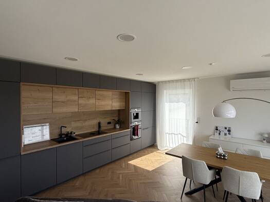 Diese außergewöhnliche Wohnung vereint modernes Design, hochwertige Ausstattung und ein einzigartiges Wohngefühl. Großzügige Fensterflächen durchfluten die Räume mit Tageslicht und eröffnen einen beeindruckenden Ausblick ins Grüne, der jeden Tag aufs Neue begeistert. Der offene Wohn- und Essbereich bildet das Herzstück der Wohnung und überzeugt durch seine klare, elegante Gestaltung. Die stilvoll integrierte Küche fügt sich harmonisch in das Gesamtbild ein und schafft eine perfekte Verbindung a...