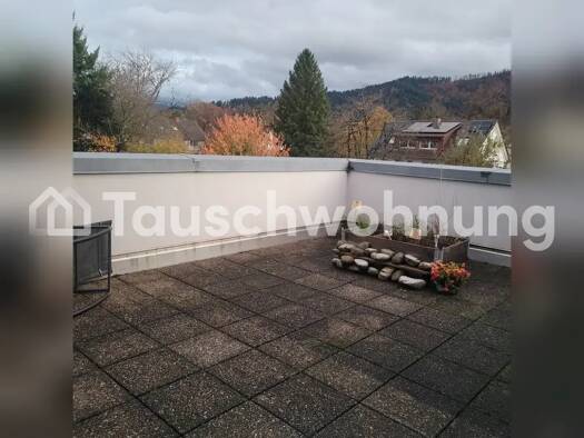 Es handelt es sich hierbei um ein Tauschangebot. (Anbieter-ID: 175956) Wir bieten eine 3,5 Zimmerwohnung in Kirchzarten in einem Reihenhaus mit drei Wohneinheiten. Unsere Wohnung ist eine gemütliche und warme DG - Wohnung mit Südbalkon. Sie bietet eine seperate Küche, Wohn,-Essbereich mit Schwedenofen, zwei abgeschlossene Zimmer und eine Galerie (ausgebauter Speicher). Das Badezimmer ist ausgestattet mit einer Wanne, Dusche, zwei Waschbecken und Toilette. Ein Carport und Keller gehören dazu. Ga...