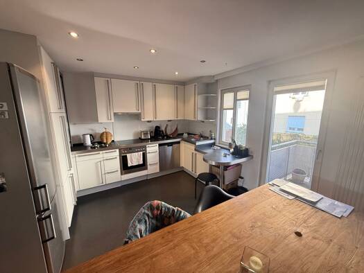 Auf großzügigen ca. 119,11 m² Wohnfläche und dank einer durchdachten Raumaufteilung finden Sie und Ihre Familie hier ein neues Zuhause zum rundum Wohlfühlen. Bodentiefe Fensterelemente sorgen für lichtdurchflutete Räume, während der Parkettboden und weiße Wände eine elegante Basis für Ihre Einrichtung bilden. Der integrierte Küchenbereich ist ein Traum für jeden Hobbykoch - eine hochwertige Einbauküche mit allen Geräten wartet hier auf Ihre Kochkünste. Vom Wohnbereich aus gelangen Sie direkt au...