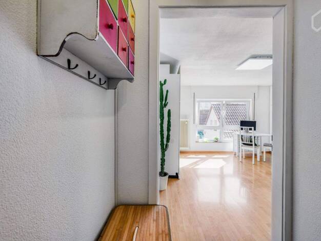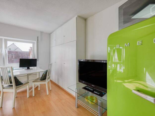 Modern möbliertes 1-Zimmer Einliegerapartment mit Internet in einem Zweifamilienhaus in grüner und ruhiger Parkanlage, in Stuttgart Zuffenhausen (Rot). Die Wohnung ist perfekt zum Erholen nach dem Feierabend. Man ist schnell im Zentrum und viele große Firmen liegen im nahen Umkreis. Gute Einkaufsmöglichkeiten sind in wenigen Minuten zu Fuß erreichbar. Auch die U-Bahn mit direkter Anbindung zum Hauptbahnhof (15 Fahrminuten) ist in nur einer Gehminute zu erreichen. Zudem befindet sich eine Outdoo...