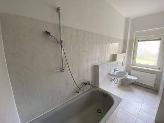 Die große, helle 3-Raum-Wohnung befindet sich im EG eines Mehrfamilienhauses in Neustadt / Greiz. Durch die Nähe zum Stadtzentrum sind alle Einkaufs- und Versorgungseinrichtungen zu Fuss sehr gut erreichbar. Die Wohnung ist aufgeteilt in ein Wohn-, Schlaf- und Kinder- oder Arbeitszimmer, eine große, geräumige Küche, einem großen Flur, und einem Tageslichtbad mit Fenster, Wanne und Waschmaschinenanschluss. Die Wohnräume sind mit modernem PVC-Boden ausgestattet. Das Bad ist mit hellen Fliesen ver...