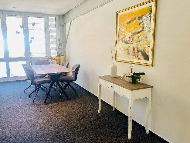 Nach Vereinbarung anzumietende Gewerbefläche mit ca. 120m² im EG eines gepflegten Wohn- und Geschäftshaus in Karlsbad-Langensteinbach. Unterteilt in 4 Räume einschließlich großzügigem Empfang. Separa...