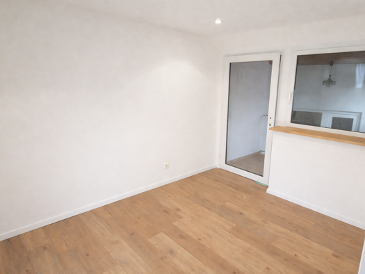 Die Wohnung verfügt über einen seperaten Eingang. Sie hat 2 großzügige Räume. Im ersten steht als zentraler Raumteiler ein historischer Kachelofen der die Küche optisch abtrennt. Anschließend zum zweiten Raum befindet sich der Zugang zum Badezimmer.