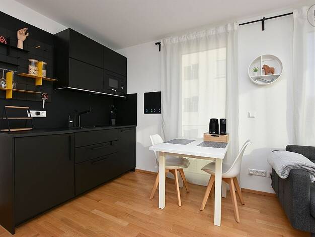 Die gemütliche 1-Zimmer Wohnung bietet alles, was Sie für einen komfortablen Lebensstil benötigen. Die Wohnung ist komplett möbliert und bietet somit eine sofortige Einzugsmöglichkeit. - ein helles und freundliches Zimmer mit großen Fenstern. - Eine moderne Kochnische mit allen notwendigen Geräten (Kühlschrank, Herd uvm.) - Ein modernes Badezimmer mit Dusche und Fenster - Eine komplette Möblierung, einschließlich eines Bettes, ein Tisch mit Stühle und ein Kleiderschrank. Die Wohnung besticht du...