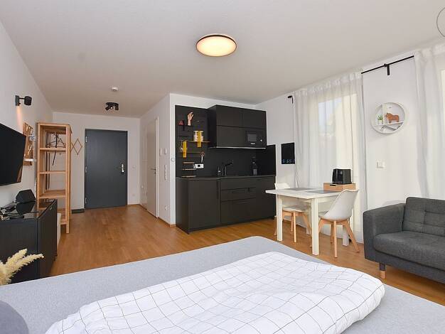Wohnen auf Zeit in Fellbach - 1-Zimmer-Apartment für 1-2 Personen Dieses 1-Zimmer-Apartment in Fellbach-Oeffingen ist für Menschen gedacht, die für einen begrenzten Zeitraum ein ruhiges, funktionales und komplett nutzbares Apartment suchen. Kein Hotelzimmer, sondern eine kleine Wohnung, in der man ankommt, wohnt und den Alltag gut organisieren kann. Das Apartment befindet sich in einem Gästehaus mit insgesamt 24 Einheiten, das überwiegend von Zeitmietern genutzt wird. Das Apartment ist für eine...