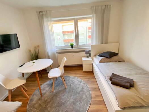 Wohnen auf Zeit in Fellbach - kompaktes 1-Zimmer-Apartment ab 1 Monat Dieses kompakte 1-Zimmer-Apartment mit ca. 17 qm in Fellbach-Oeffingen richtet sich an Menschen, die eine funktionale und gut organisierte Lösung für Wohnen auf Zeit suchen. Es handelt sich nicht um ein Hotelzimmer, sondern um ein eigenständiges, möbliertes Apartment für längere Aufenthalte ab einem Monat oder länger. Das Apartment befindet sich in einem Gästehaus mit insgesamt 24 Einheiten, das überwiegend von Zeitmietern un...