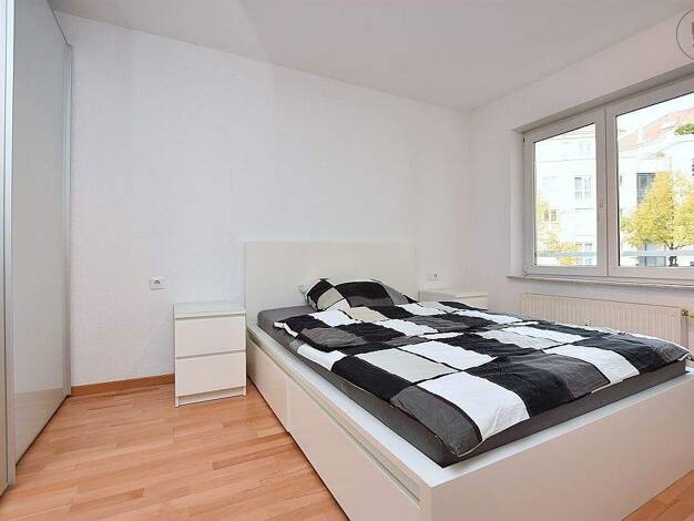 Wunderschönes, neu möbliertes WG-Zimmer in einer kernsanierten, mit Liebe zum Detail ausgestatteten 4-Zimmer Wohnung in zentraler Wohnlage in Ludwigsburg Mitte. Das liebevoll eingerichtete und dekorierte Zimmer mit elektrischem Rollladen, ist unter anderem mit einem Bett (90x200), einem Sideobard mit Smart-TV, einem Arbeitsbereich, einem Regal und einem Kleiderschrank möbliert. Gemeinschaftlich genutzt werden die moderne Einbauküche (voll ausgestattet mit Geschirr, Besteck, Töpfen, Mixer, Kaffe...