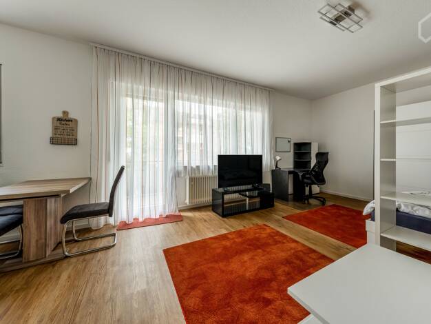 Willkommen in Ihrem möblierten Zuhause auf Zeit - großzügig, hell und herrlich unkompliziert. Diese charmante 1-Zimmer-Wohnung bietet alles, was Sie zum Wohnen, Arbeiten und Wohlfühlen brauchen - ob ...