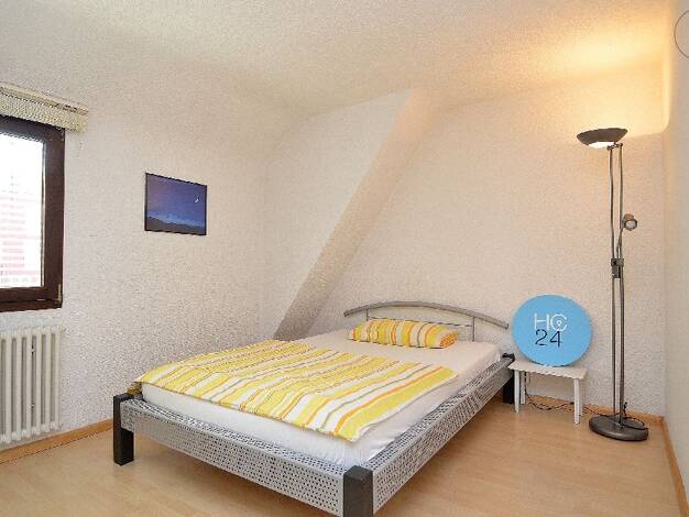 Diese helle 1-Zimmer-Wohung liegt im Dachgeschoss eines großen Zweifamilienhauses im schönen Künstlerdorf Ötlingen - einem Ortsteil von Weil am Rhein. Die Wohnung verfügt über einen Wohn-/Schlafbereich und einem Essbereich mit Kochecke sowie einem separaten Badezimmer. Der Wohnbereich bietet ein modernes Ecksofa mit Schlaffunktion, einen Sessel, einen Couchtisch und ein TV-Gerät. Der Schlafbereich hat ein französisches (140/200) Bett und einen Kleiderschrank, der auch als Raumteiler dient. Die ...