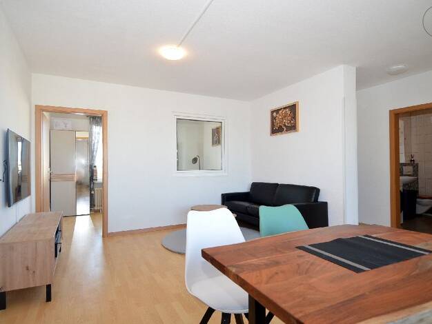 Diese helle 2,5-Zimmer-Wohnung befindet sich im EG einer Doppelhaushälfte in zentraler Lage in Weil am Rhein. Die Wohnung beinhaltet ein Wohnzimmer, ein Schlafzimmer, eine Wohnküche, ein Badezimmer mit separatem WC und einem Balkon. Das Wohnzimmer bietet ein großes Ecksofa mit Schlaffunktion und ein TV-Gerät (Smart TV). Vom Wohnzimmer aus gelangt man ins Schlafzimmer sowie auch auf den kleinen Balkon. Das Schlafzimmer hat ein Doppelbett (180/200) und zwei große Kleiderschränke. Über den Flur er...
