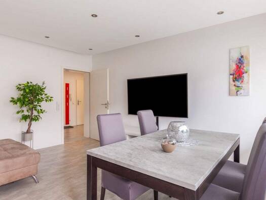 Hier erwartet Sie eine stilvoll eingerichtete 2-Zimmer-Wohnung für Wohnen auf Zeit in Filderstadt. Die Wohnung bietet ein gemütliches Wohnzimmer mit einem 65-Zoll-TV, einem Esstisch, einer Schlafcouc...