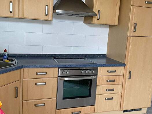 Großräumige eingerichtete 2-Zimmerdachgeschosswohnung. Wohnzimmer mit Essbereich und TV, Schlafzimmer mit Balkon. Komplett ausgestatte Einbauküche mit Spülmaschine, Ceran-Kochfeld, Backofen/Grill, Kü...