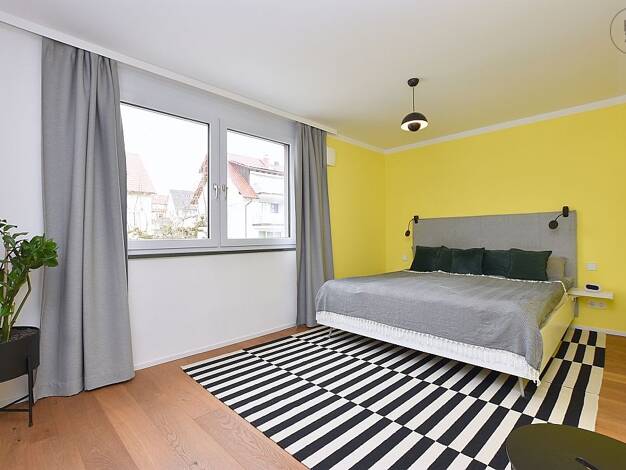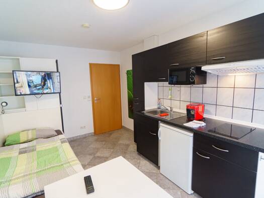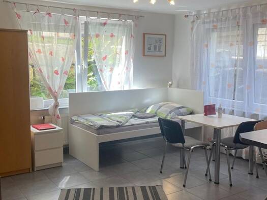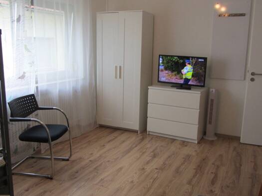 Möbliertes WG-Zimmer für Wohnen auf Zeit in Filderstadt: Tolles, komplett möbliertes Gästezimmer in Filderstadt, Ortsteil Bonlanden. Das Zimmer ist in einem Einfamilienhaus im Soutterrain. Das Zimmer hat Fussbodenheizung, einen gemütlichen Essbereich mit Eckbank und eine eigene komplett ausgestattet und löffelfertig Küchenzeile (mit 2 Herdplatten, Microwelle, Kühlschrank, Kaffeepadmaschine, Wasserkocher, Toaster, Eierkocher, Spülbecken). Sie haben auch ein Bad mit Dusche, Badewanne, Doppelwasch...