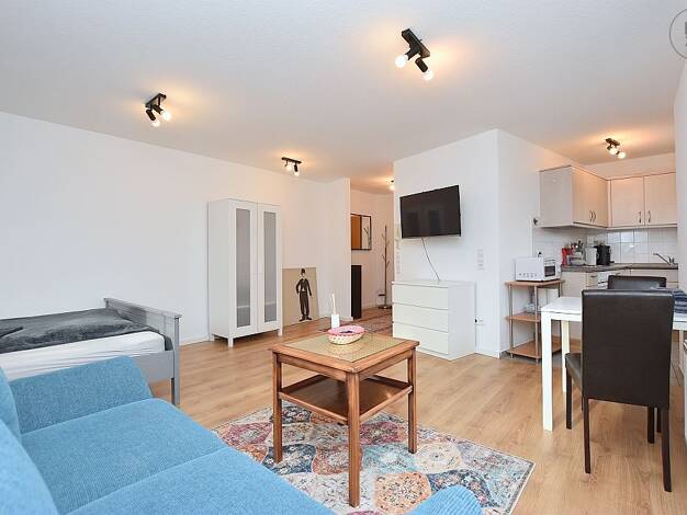 Die gemütliche 1-Zimmer Wohnung bietet alles, was Sie für einen komfortablen Lebensstil benötigen. Die Wohnung ist komplett möbliert und bietet somit eine sofortige Einzugsmöglichkeit. - ein helles und freundliches Zimmer mit großen Fenstern. - Eine moderne Kochnische mit allen notwendigen Geräten (Kühlschrank, Herd uvm.) - Ein modernes Badezimmer mit Dusche und Fenster - Eine komplette Möblierung, einschließlich eines Bettes, ein Tisch mit Stühle und ein Kleiderschrank. Die Wohnung besticht du...