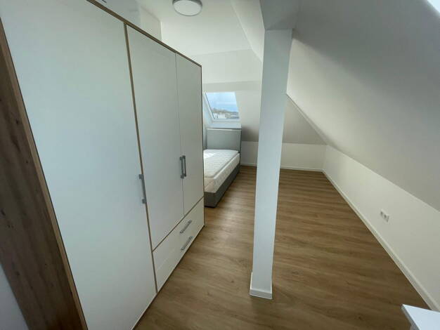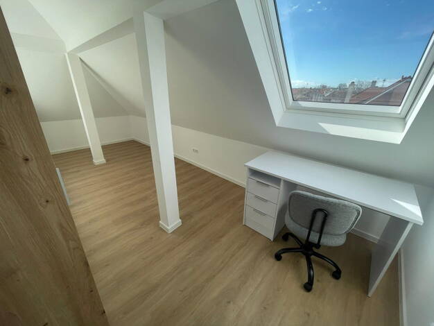 In einem gepflegten Mehrfamilienhaus steht ein möbliertes WG-Zimmer in einer frisch gegründeten 5er WG zur Vermietung. Die Wohnung im DG wurde frisch saniert und erstreckt sich großzügig über zwei Etagen (Maisonette-Stil). - Aufteilung: Untere Ebene: 3 Zimmer, Einbauküche, Gemeinschaftsraum, Balkon und Badezimmer. Obere Ebene: 2 Zimmer und ein separates, zweites Badezimmer. - Besonderheit: Die beiden Zimmer im Obergeschoss sind mit einer eigenen Klimaanlage ausgestattet - ideal für heiße Sommer...