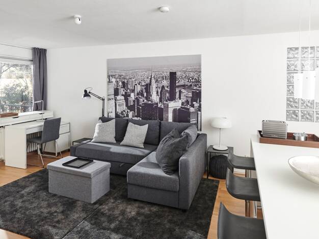 Wohnen auf Zeit in Böblingen - Ab 1 Monat Willkommen in unserer modernen 1-Zimmerwohnung in Böblingen! Die Wohnung ist voll ausgestattet, inklusive TV, Küche und eigenem Bad mit Dusche und WC. WLAN i...