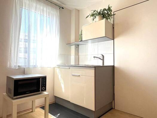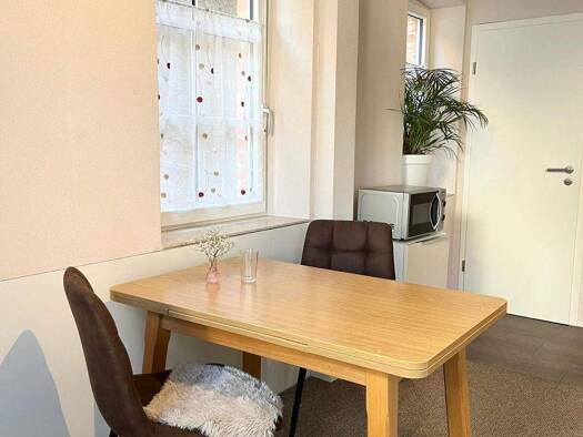 Die gemütliche Einliegerwohnung überzeugt durch ihre helle und freundliche Atmosphäre. Beim Betreten fällt sofort das großzügige Wohnzimmer ins Auge, das gleichzeitig als Schlafbereich dient. Der Rau...