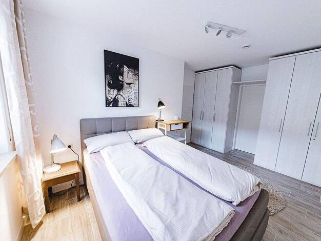 großzügige, helle 3-Zimmer-Wohnung in Reutlingen, ca. 100 m², 1. OG, 2 Schlafräume mit je 2 Einzelbetten, Wohnzimmer mit TV, Balkon, Sitzecke, Esstisch; große Küche, Tageslichtbad mit Regen-Dusche und WC, Waschmaschine und Trockner gegen Gebühr, Stellplatz gegen Gebühr möglich, MWST wird ausgewiesen