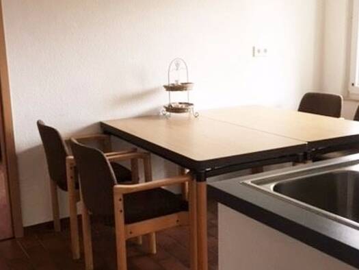 Wohnen auf Zeit in Schwaikheim. Herzlich Willkommen. Hier bieten wir Ihnen viel Platz mit 75 qm in einer 2-Zimmerwohnung. Eine schöne Terrasse ist über das Wohnzimmer erreichbar und mit Gartenmöbeln und Sonnenschirm ausgestattet. Die offene Küche ist voll ausgestattet mit Cerankochfeld, Mikrowelle, Kaffeemaschine, Toaster, Kühl- und Gefrierschrank sowie einem Esstisch mit 4 Stühle. In der Küche befinde sich auch die Waschmaschine, die Sie kostenlos benützen können (Waschpulver selber mitbringen...
