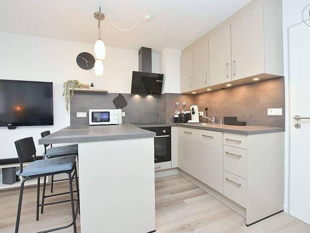 modernes Apartment in Leonberg, ca. 40 m², 4. OG, Bett (1,40 m), Küche mit Essplatz, Waschmaschine, Tageslichtbad mit Duschwanne und WC; Abstellraum, TV, WLAN