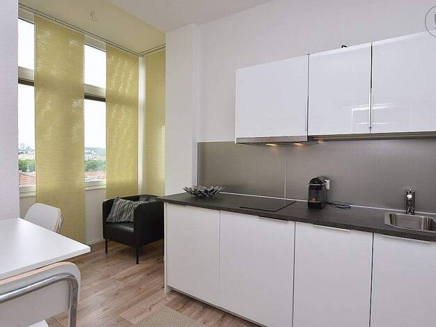 Vollmöbliertes 1-Zimmer Apartment mit Ausblick im 14. Stock des SI-Centrum in Stuttgart-Möhringen. ERSTBEZUG NACH SANIERUNG! Mindestmietdauer 1 Jahr. Maximal EINE Person, Nichtraucher, keine Haustier...
