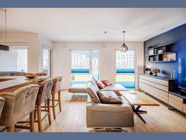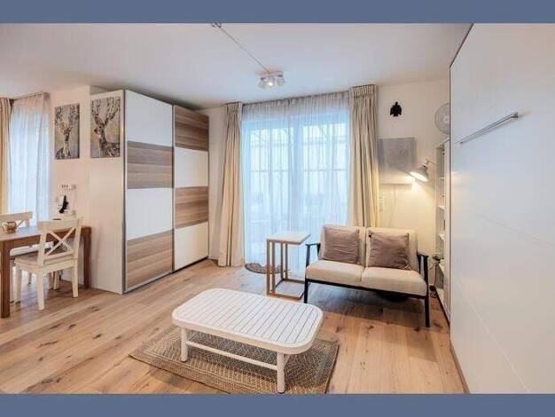 Dieses stilvoll eingerichtete Apartment verbindet modernes Design mit klassischer Eleganz und bietet alles für komfortables Wohnen: Gemütliche Schlafnische mit Doppelbett Heller Wohnbereich mit komfo...