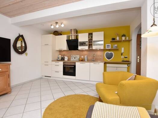 Die sonnige 2-Zimmer-Wohnung mit Balkon befindet sich im 1. OG in zentraler Lage in Kaufbeuren. Das Objekt verfügt über einen Aufzug. Großzügiger Wohn-Essbereich mit Essplatz und vier Stühlen, Couch, Couchtisch sowie Sideboard und Regalen. Eine voll ausgestattete Küche ist in offener Raumgestaltung direkt angrenzend und bietet Zugang zum Balkon. Schlafzimmer mit großem Doppelbett, Nachttischen, Schreibtisch und Kleiderschrank. Bad ist mit bodengleicher Dusche, Waschtisch, Spiegel und WC. Im Flu...