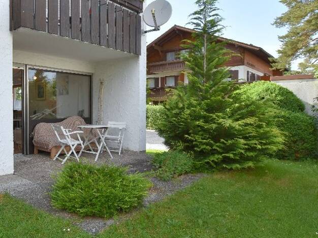 Diese ruhige 2-Zimmer-Erdgeschosswohnung mit 53 qm und Terrasse liegt in der Nähe des Forggensees. Der offen gestaltete Koch-, Ess-, Wohnbereich verfügt über eine vollständig ausgestattete Einbauküche inkl. Spülmaschine, Esstisch mit Eckbank, 2-Sitzer Sofa, Sessel, Couchtisch, Kommode und Flat-TV. Im Schlafzimmer gibt es ein Doppelbett (1,80 x 2,00m) und einen 2-türigen Kleiderschrank. Das Tageslichtbad ist mit einer Duschwanne, Waschbecken und WC eingerichtet. Vom Wohn- und Schlafzimmer geht e...