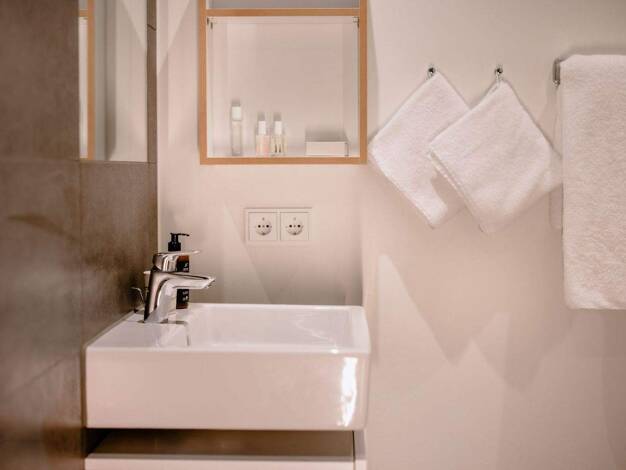 Dieses stilvoll eingerichtete Apartment verbindet modernes Design mit klassischer Eleganz und bietet alles für komfortables Wohnen: Gemütliche Schlafnische mit Doppelbett Heller Wohnbereich mit komfortablem L-förmigem Sofa Großer Balkon Optisch separierte Küche mit Essbereich für 2 Personen Modern-klassisches Bad mit Badewanne Waschküche im Haus Internet inklusive