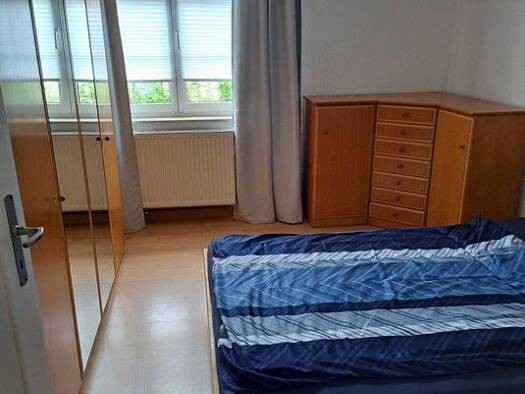 Ideal zum Siemens Campus: Modern möblierte 2,5-Zimmer-Wohnung mit WLAN (100er Leitung) und Balkon in einem gepflegten und ruhig gelegenen Reihenhaus in Erlangen Bruck. Die Möblierung des Wohnzimmers besteht aus einer Ledercouch, Lowboard mit Flatscreen-TV, Sideboard sowie einem Esstisch mit 4 Stühlen. Der angrenzende Balkon lädt zum Verweilen ein. Das Schlafzimmer ist eingerichtet mit einem Doppelbett (1,80x2,00 m), einem Kleiderschrank und einer großen Schreibtischfläche/-Arbeitsplatz mit 2 St...