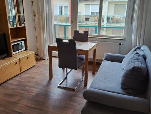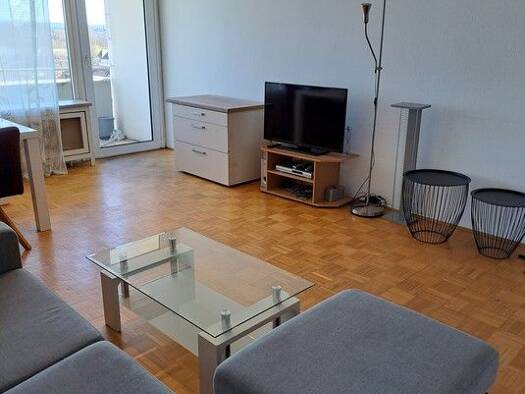 Gemütlich möblierte 2-Zimmer-Wohnung mit WLAN, Balkon und optionaler Garage in einem gepflegten Mehrfamilienhaus in Erlangen etc. Die Möblierung des Wohnzimmers besteht aus einer Eckcouch, Couchtisch, Wohnwand mit Flatscreen TV. Angrenzend befindet sich die offene Einbauküche ausgestattet mit allen Utensilien des täglichen Bedarfs wie Cerankochfeld mit Dunstabzug, Backofen, Geschirrspüler, Kühlschrank, Kochutensilien, Wasserkocher etc. Ein Esstisch mit 4 Stühlen ist ebenfalls vorhanden. Das Sch...