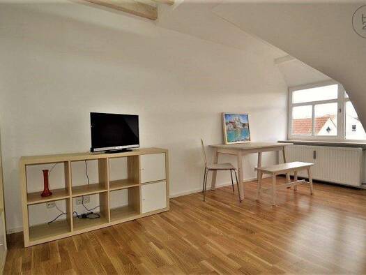Diese gemütliche Einliegerwohnung liegt in einer ruhigen Straße in Augsburg Pfersee. Sie ist aufgeteilt in ein eigenes Duschbad und einen offenen Wohn-, Ess- und Küchenbereich. Über eine Treppe gelan...