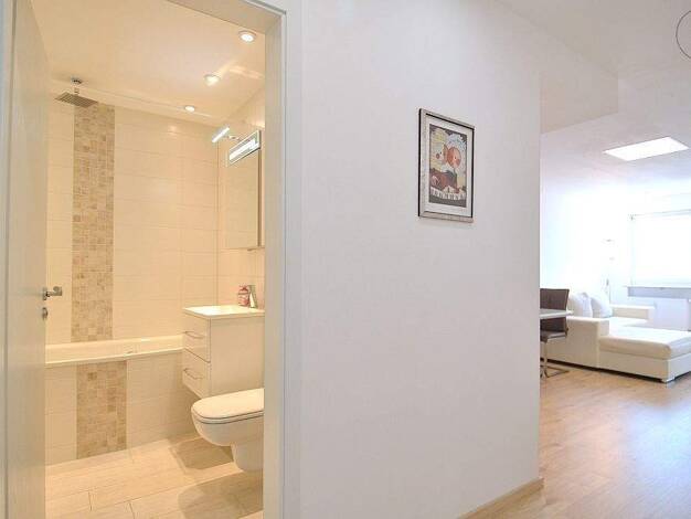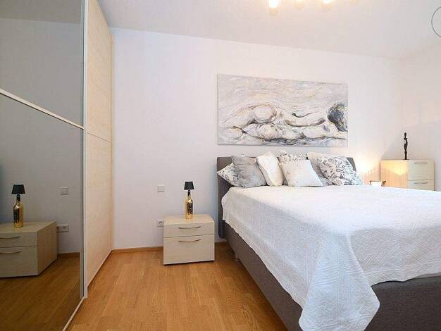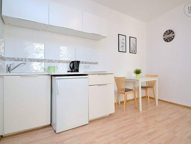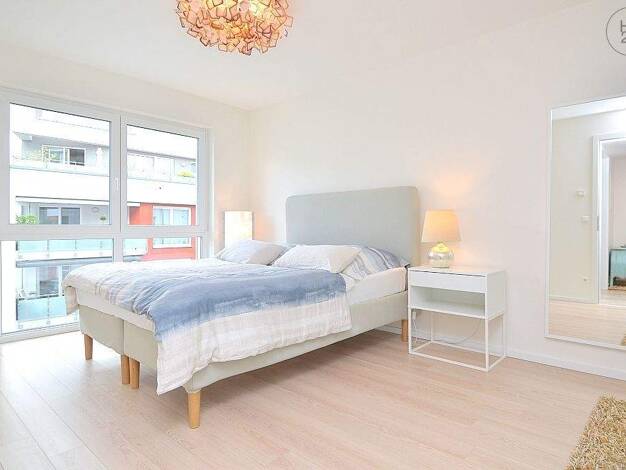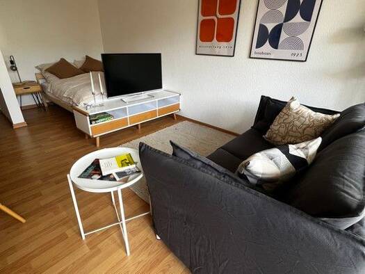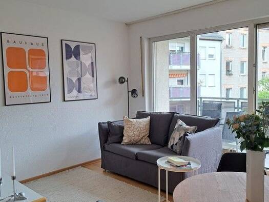 Vermietet wird eine schön möblierte 2-Zimmer-Wohnung mit WLAN in Fürth. Die Möblierung des Wohnzimmers besteht aus einer grauen Schlafcouch, 2 Beistelltischen, TV-Board mit Flatscreen TV, Garderobenschrank und einem Esstisch mit 2 Stühlen. Die offene Singleküche ist mit allen Utensilien des täglichen Bedarfs ausgestattet wie Cerankochfeld, Kühlschrank, Toaster, Wasserkocher, Geschirr, Kochutensilien etc. Das Schlafzimmer ist eingerichtet mit einem Doppelbett (1,80x2,00 m), 2 Nachtkästchen, Schr...
