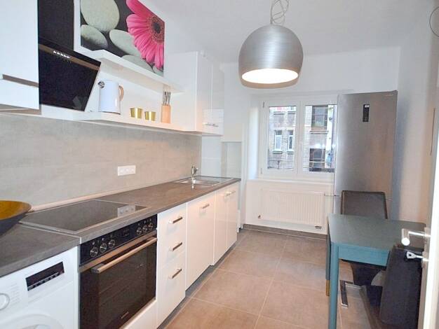 Vermietet wird eine schön möblierte 2-Zimmer-Wohnung mit WLAN in Fürth. Die Möblierung des Wohnzimmers besteht aus einer grauen Schlafcouch, 2 Beistelltischen, TV-Board mit Flatscreen TV, Garderobenschrank und einem Esstisch mit 2 Stühlen. Die offene Singleküche ist mit allen Utensilien des täglichen Bedarfs ausgestattet wie Cerankochfeld, Kühlschrank, Toaster, Wasserkocher, Geschirr, Kochutensilien etc. Das Schlafzimmer ist eingerichtet mit einem Doppelbett (1,80x2,00 m), 2 Nachtkästchen, Schr...