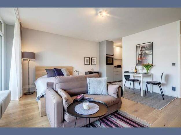 Weitere Informationen, viele hochauflösende Fotos und ein Video zu diesem Objekt finden Sie unter: https://www.mrlodge.de/wohnungen/detailansicht/13523/ See offer in English: https://www.mrlodge.com/search/detailed-view/13523/ Zimmer: Kombiniertes Wohn-/Schlafzimmer:, Doppelbett 180 x 200 cm, Sofa, Esstisch mit 4 Stühlen, Kleiderschrank, Bad mit Dusche Möblierung: neuwertig, exklusiv Küche: Einbauküche, Kühl-/ Gefrierkombination, Spülmaschine, Cerankochfeld, elektrischer Backofen, Dunstabzug, E...